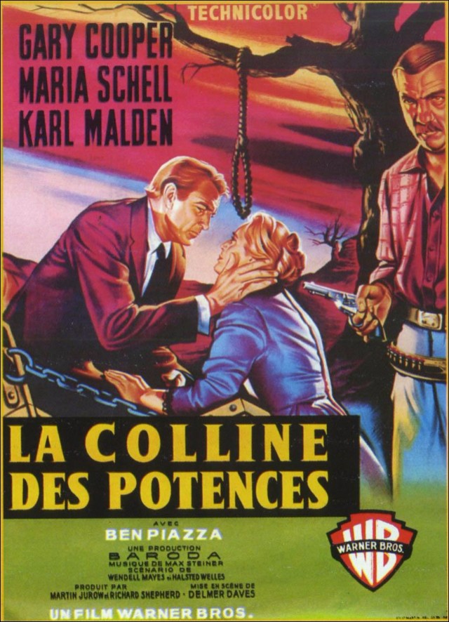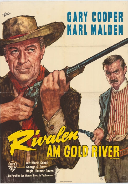 Sinopse: A Árvore dos enforcados (The Hanging Tree). "Gary Cooper em um dos seus últimos papeis no cinema, faz um médico que chega para trabalhar com doentes num campo de mineração, na época da corrida do ouro, fugindo do seu passado obscuro. Neste campo Frenchy (Karl Malden) interpreta um mineiro inescrupuloso, que tudo fará para se apoderar do rico metal. A bela Elizabeth (Maria Schell) é encontrada ferida e é tratada pelo doutor Frail (Cooper). Quando se recupera, se descobre que ela é dona de uma rica jazida na região, que desperta a cobiça de todos. Este é o cenário de um drama ambientado no faroeste, em que não faltam romance, duelos, brigas e até enforcamentos".