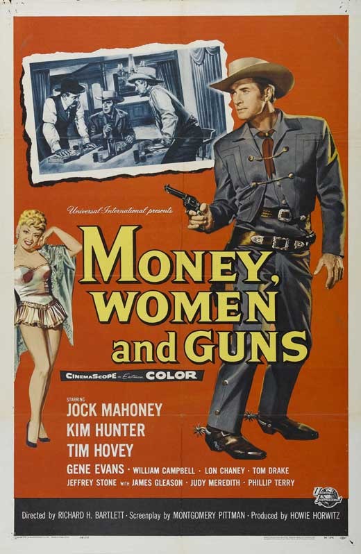 Sinopse: Falta um para vingar (Money, Women and guns). Depois de fazer uma grande descoberta de ouro, um mineiro velho e emboscado e morto por três bandidos mascarados, mas antes de morrer consegue matar dois dos seus agressores. Ele também consegue passar uma mensagem que chega até "Silver",detetive Ward Hogan (Jock Mahoney), que foi contratado para rastrear os herdeiros legítimos e encontrar o terceiro assassino.