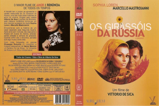 Sinopse: Os Girassóis da Rússia (I Girasoli). Os Girassóis da Rússia, uma das mais belas histórias de amor do cinema. Dirigido pelo mestre Vittorio De Sica, este clássico romântico tornou-se um dos maiores sucessos da dupla Sophia Loren e Marcello Mastroianni. Emocione-se com a história de um casal separado pela Segunda Guerra. Com linda fotografia do grande Giuseppe Rotunno e música inesquecível de Henry Mancini, Os Girassóis da Rússia é um filme indispensável.