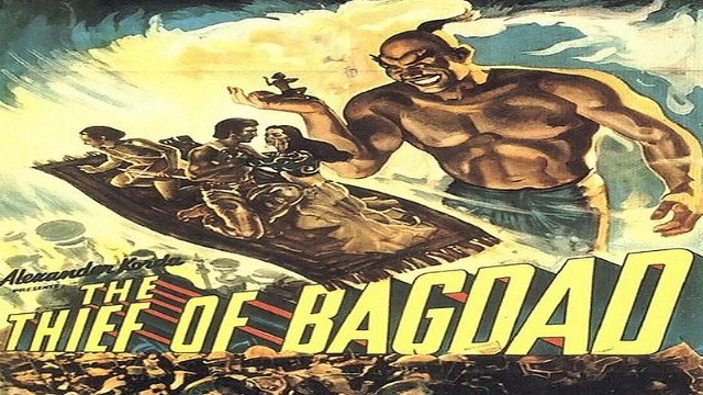 Sinopse: O Ladrão de Bagdá (The Thief Bagdad). Abu (Sabu) é um esperto larápio, disposto a enganar e derrotar o feiticeiro Jaffar (Conrad Veidt), e devolver o trono ao honrado sultão (John Justin). Abu sabe que ele deve confiar em toda a sua coragem e destreza para completar essa gloriosa missão. Ele também contará com a ajuda de uma fonte inesperada: um gênio (Rex Ingram) que vai lhe garantir três desejos quando for libertado.