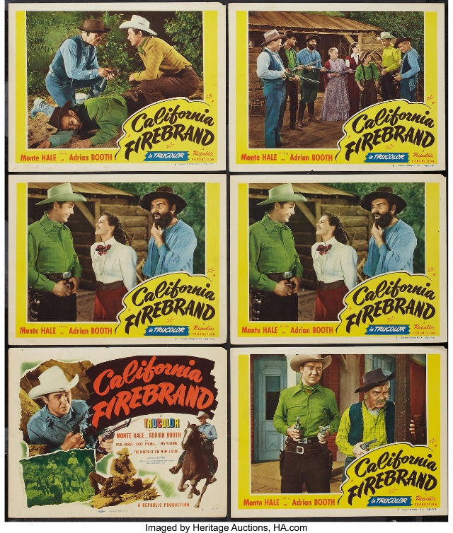 Curiosidades=Ao termino das filmagens LeRoy Mason sofreu um ataque cardíaco no set e morreu um mês depois. California Firebrand (1948) é um western da Republic Pictures que foi filmado em Trucolor, o processo exclusivo de duas cores do estúdio e usado principalmente nos westerns da República entre 1946 e 1956. Monte Hale, a estrela do filme, fez oito westerns em cores durante seu mandato na República. As músicas são fornecidas por Hale cantando solo e pela artista musical Alice Tyrrell (uma loira atrevida deliciosa que fez muito poucos filmes) acompanhada pelo grupo ocidental, Foy Willing e os Cavaleiros do Sábio Roxo, que substituiriam Bob Nolan e os Filhos da Paixão.